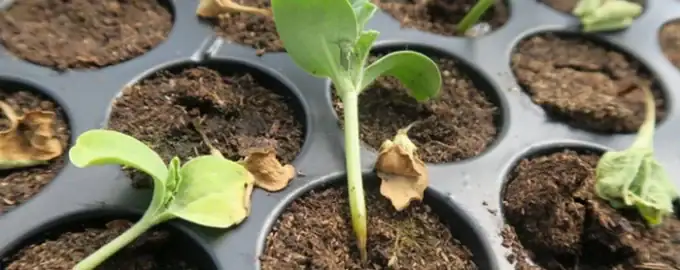 Een belangrijke factor is het correct vullen van de containers. Planten moeten op het oppervlak van de grond staan, niet in een kuil. Wanneer zaailingen worden opgesloten door hoge containerwanden (zoals vaak het geval is bij zaaien in diepe taartdozen), vormt zich een zone van stilstaande vochtige lucht rond de stengels. Open schappen en goede ventilatie in de kamer creëren omstandigheden waarin de droge lucht de ziekteverwekker op natuurlijke wijze doodt en voorkomt dat deze zich vasthecht aan de tere stengel.