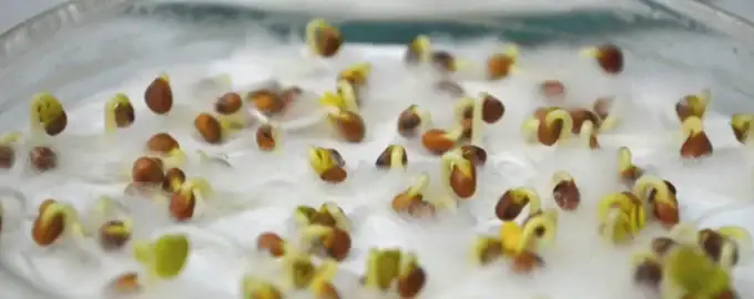 - Als je zeker bent van de kwaliteit van het zaad en alleen het zwel- of pikproces in gang hoeft te zetten, is het voldoende om gewoon schoon water te gebruiken. Het einde van het proces is wanneer de zaden merkbaar in volume toenemen.