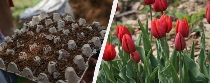 Om tulpen er prachtig uit te laten zien in het bloembed en niet ziek te laten worden, plant je ze in eierdozen.