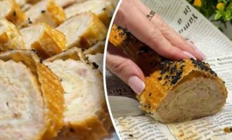 - Snijd in stukken en serveer warm.